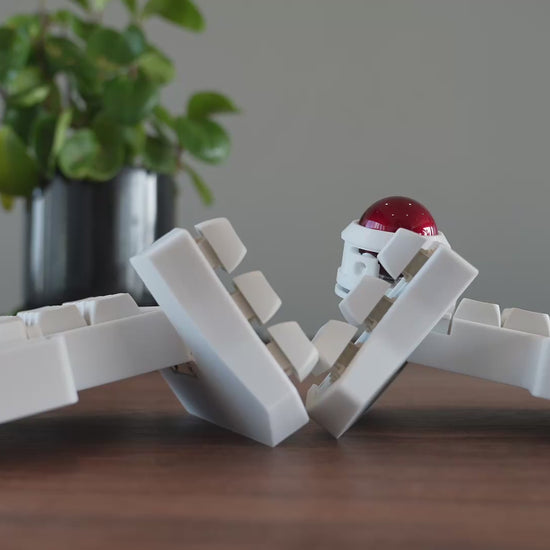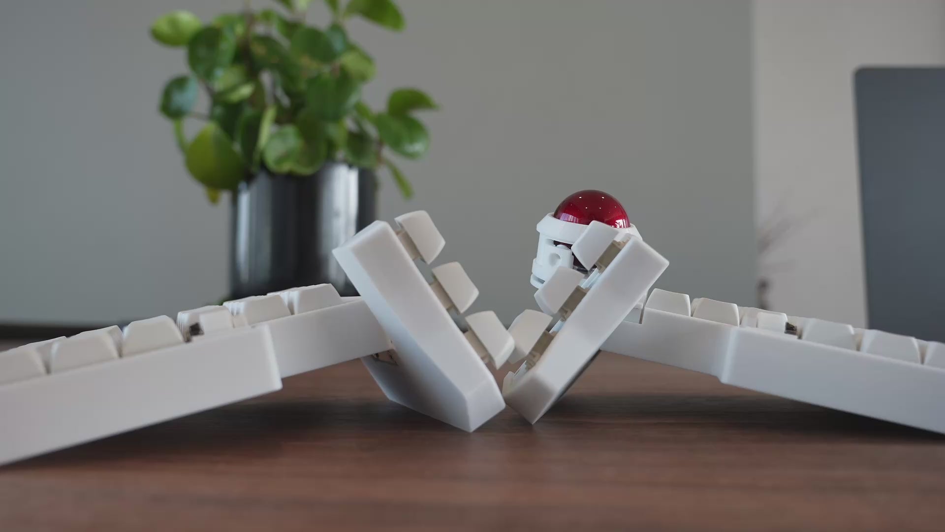 Inspired by the Crosses design, this advanced split mechanical keyboard features a built-in trackball, with adjustable tenting for the key positioning to match your natural hand posture.
