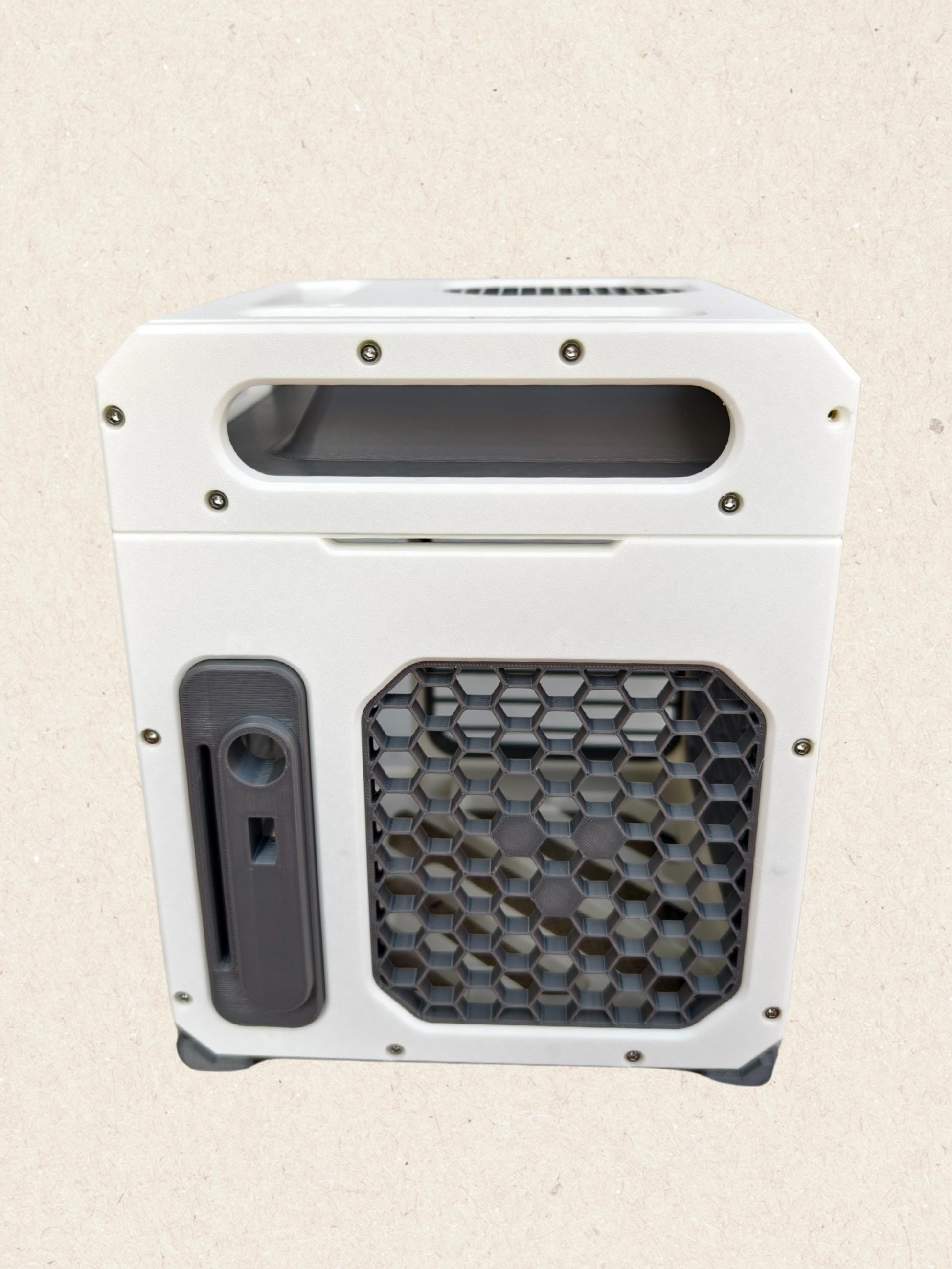 Type: Desktop-level ITX frame, open design. - Color: Mixed white and gray. - Condition: Brand new - Heat dissipation: Air cooling design.